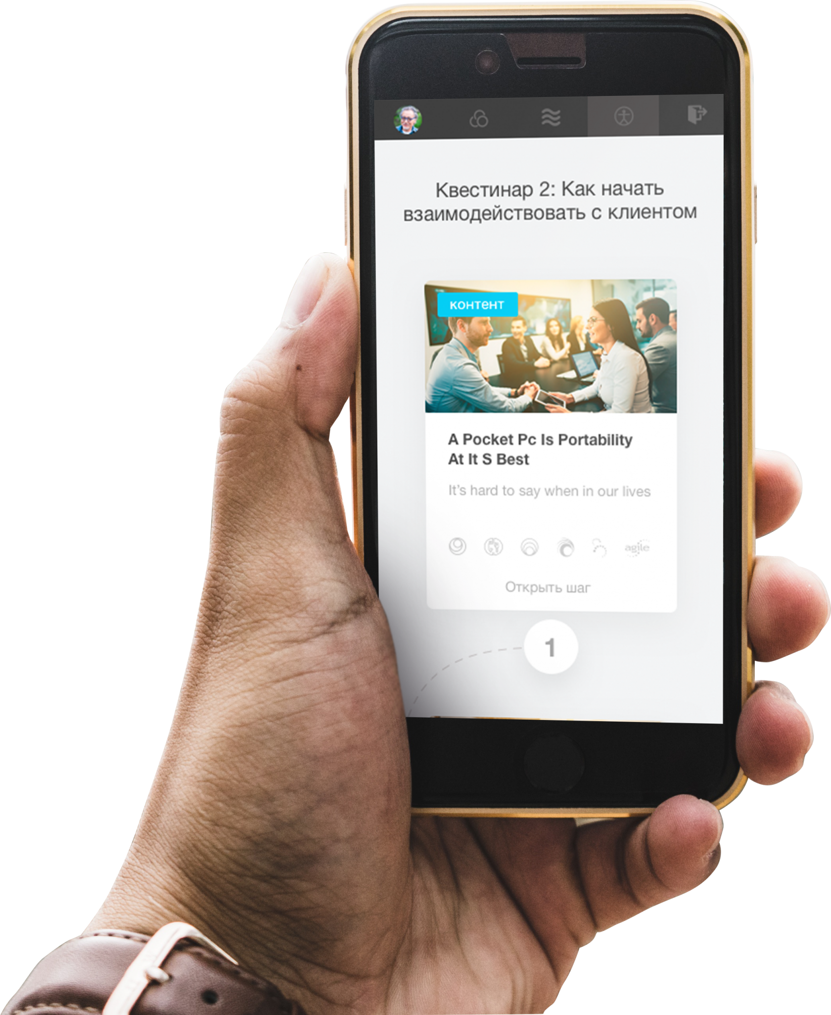 Перейдя на шаг карточки, вы обнаружите контент для обучения, а так же форма для ответов UGC для выполнения заданий