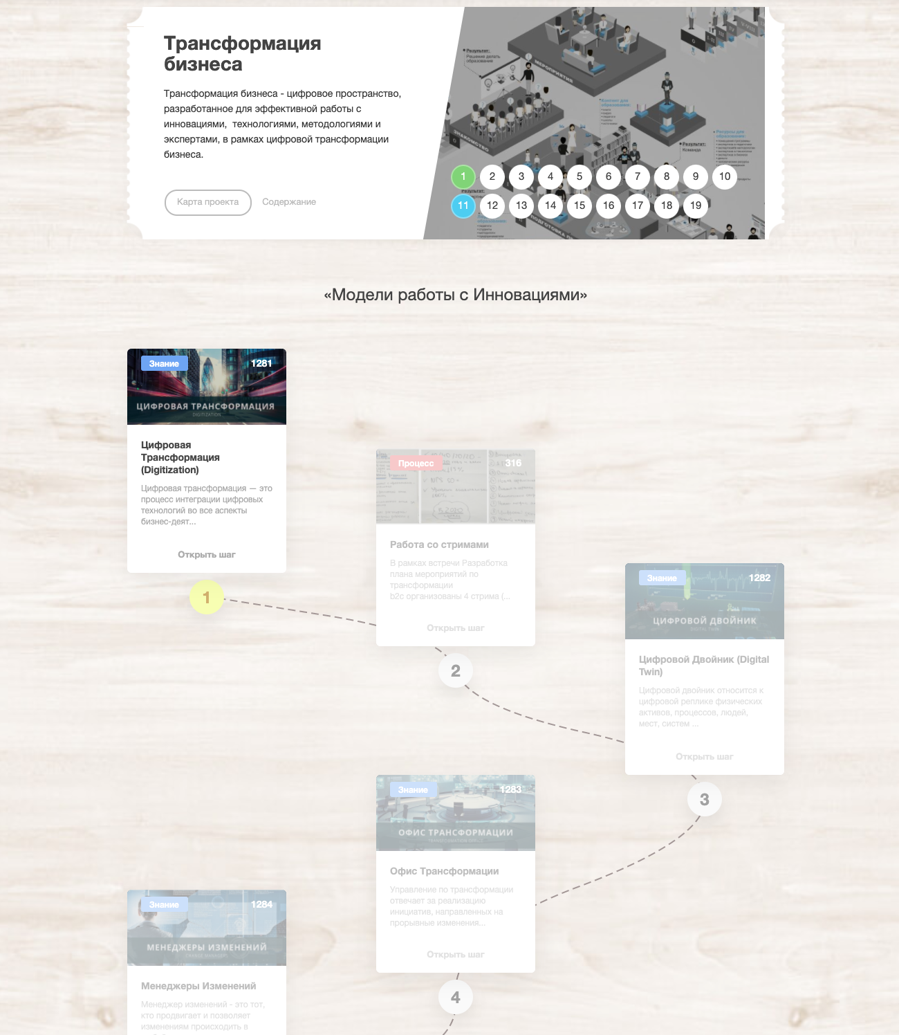 Собственная патентованная LXP-платформа Teal.One для масштабирования экспертизы и управления портфелем инициатив, используется в крупных российских и зарубежных компаниях
