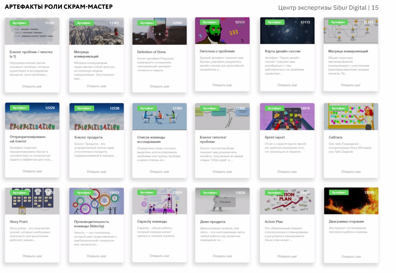 Результат: по составленным вами траекториям студенты проходят карточки и отрабатывают навыки получения артефактов, которые должна уметь генерировать бизнес-роль